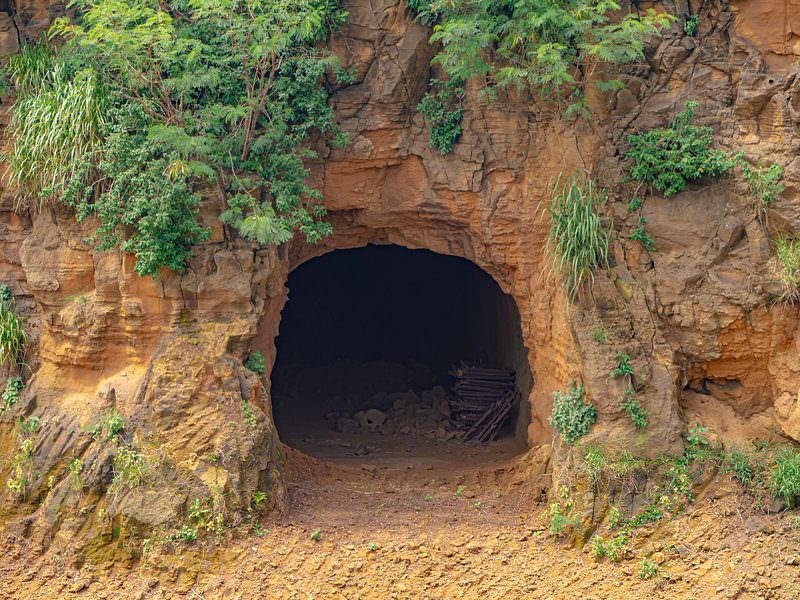 薄暗い戦車壕又は魚雷調整所内に残された米軍ベッド