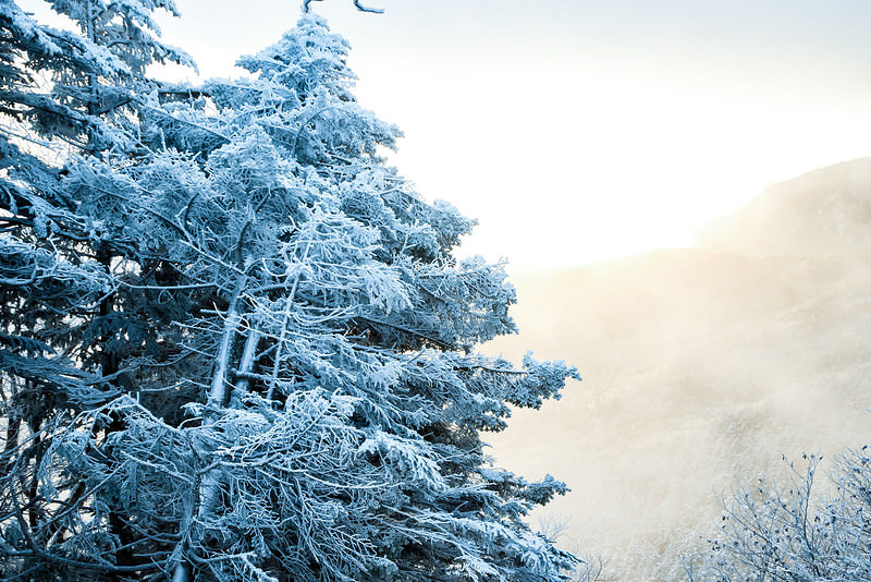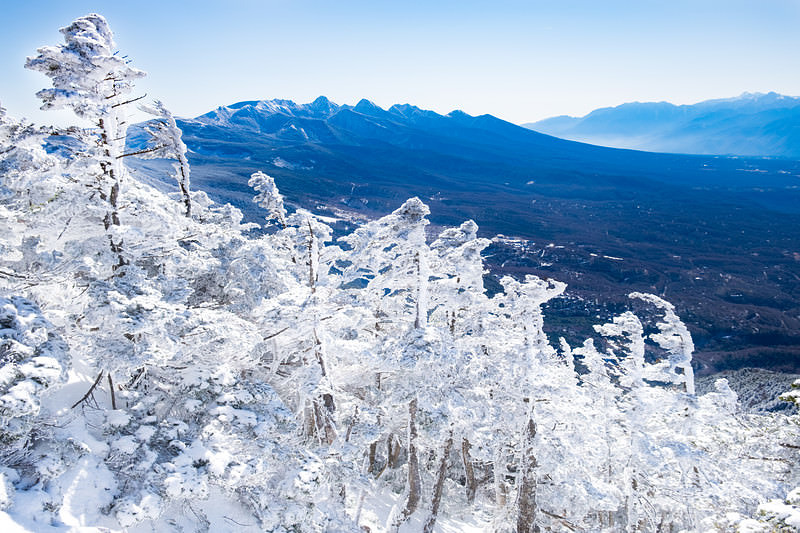 徐々に凍っていく筑波山の山肌とロープウェイ