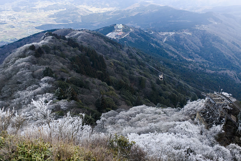 徐々に凍っていく筑波山の山肌とロープウェイ